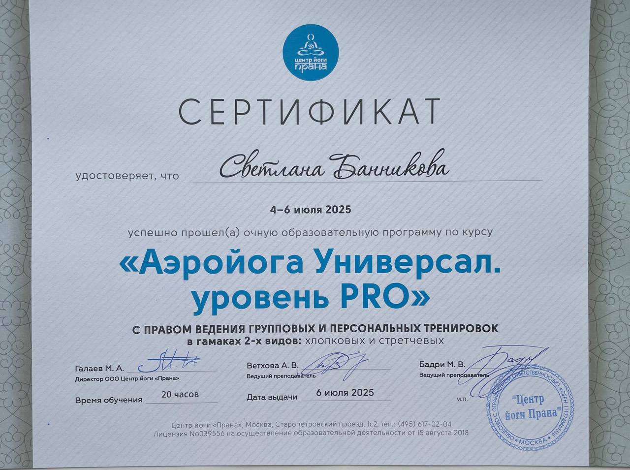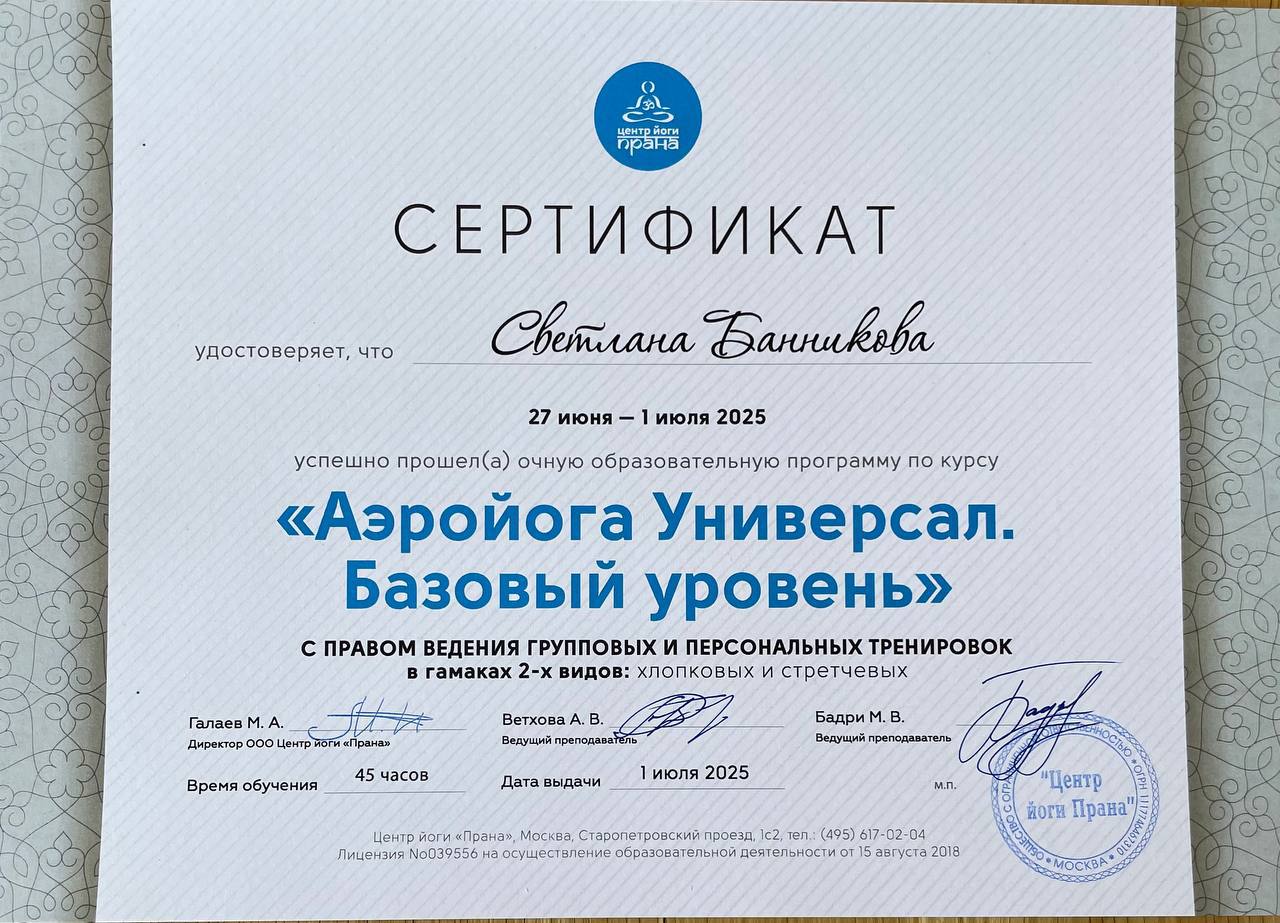 «Каждая практика Аэройоги открывает новые возможности нашего тела и ума».